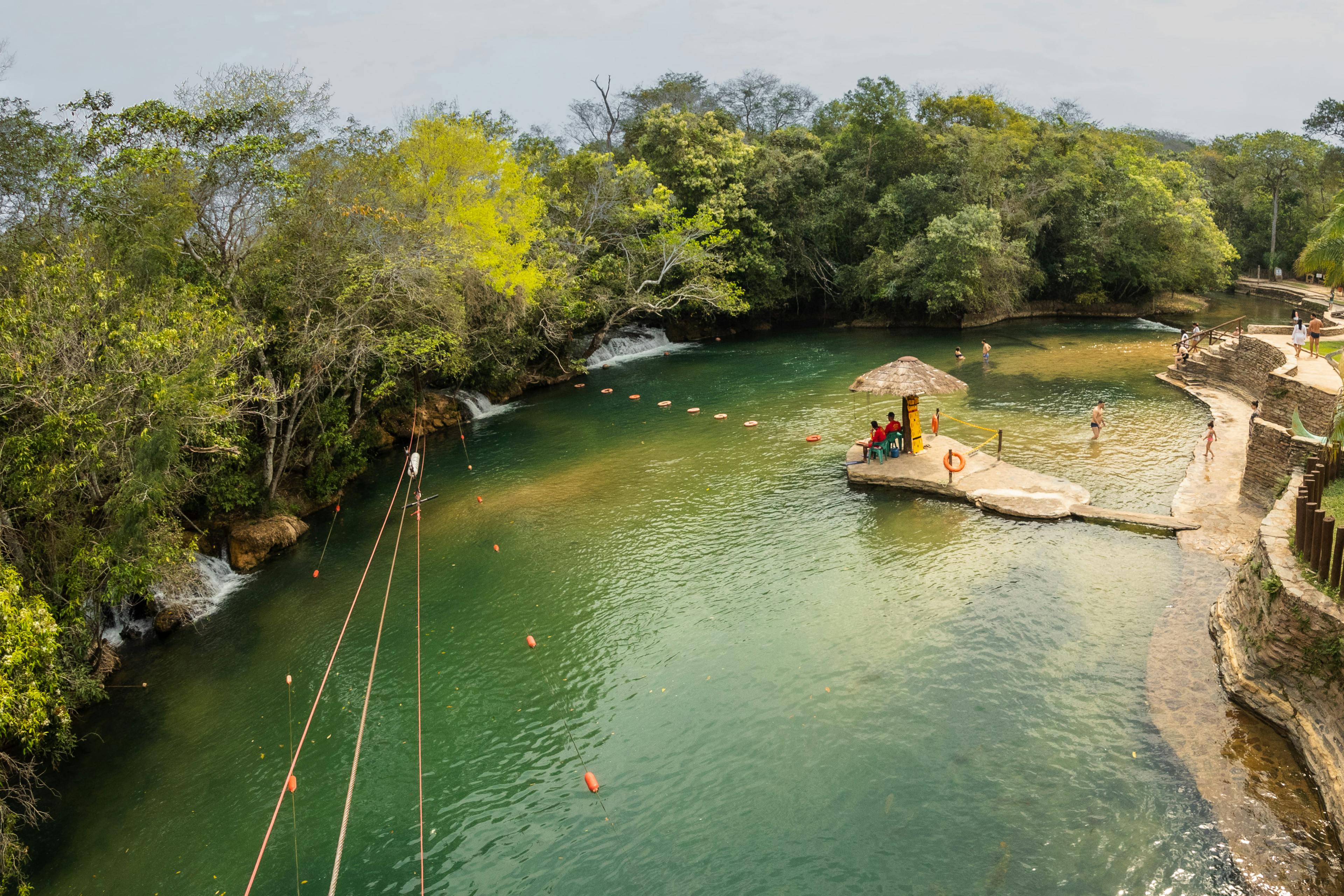 Localizado no Rio Formoso, o balneário oferece águas cristalinas, cachoeiras e piscinas naturais para nadar, além de uma ampla área de lazer com diversas opções como tirolesa aquática, trampolim, restaurante e mais.